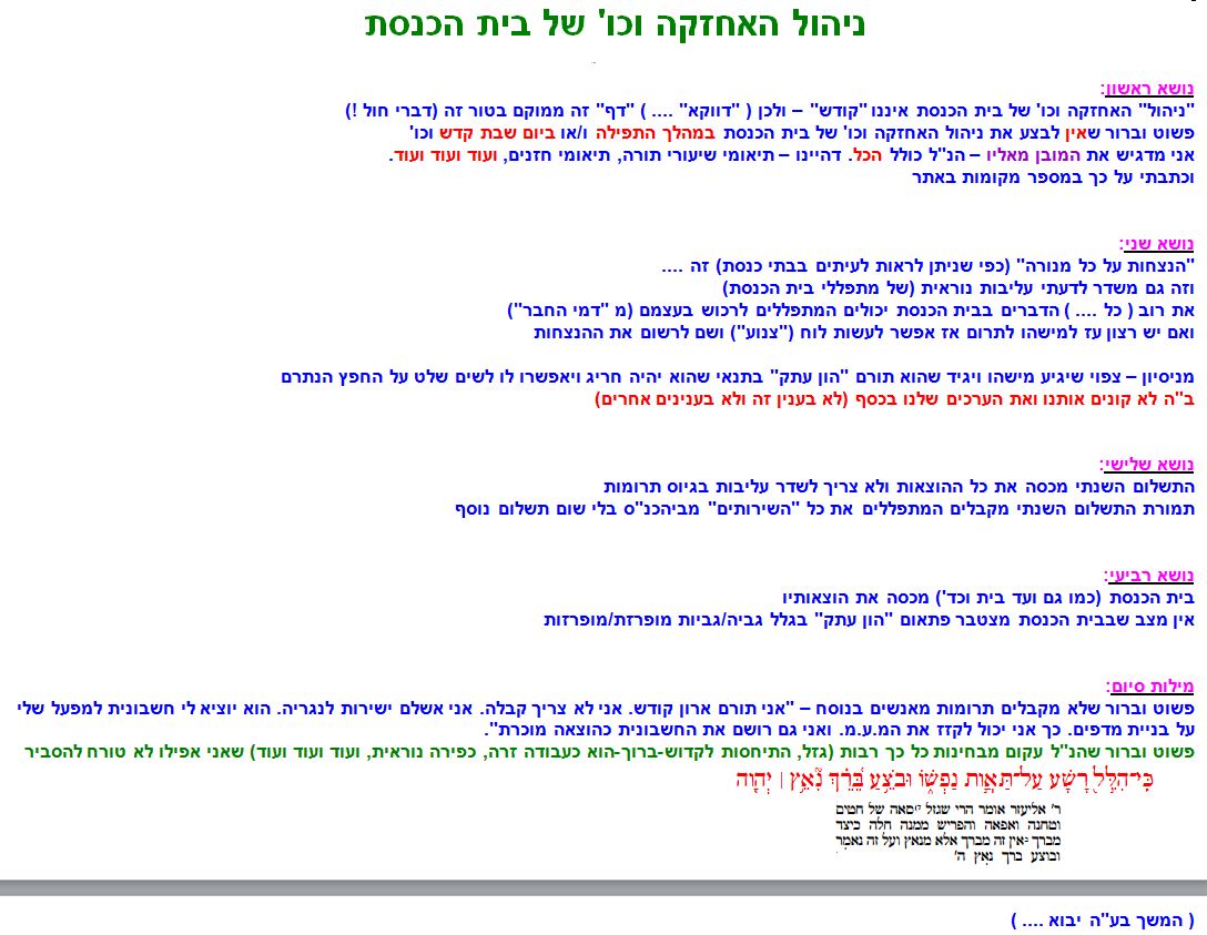 ניהול האחזקה וכו' של ביהכנ"ס