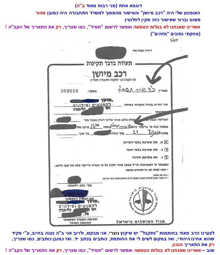 דוגמא אישור רכב מיושן