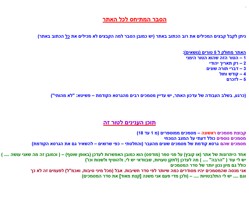 הסבר לכל האתר ותוכן ענינים לטור זה